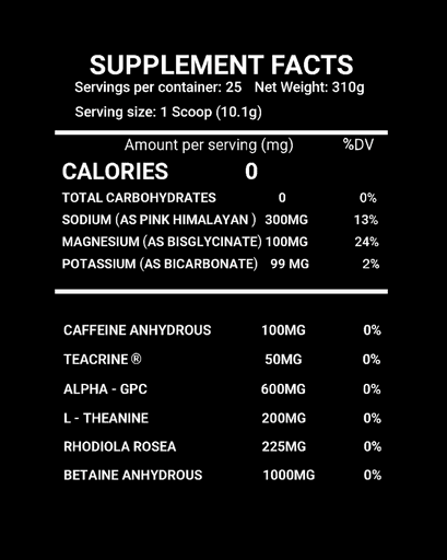 25 servings of Science backed action sports pre-workout with ENERGY + electrolytes + mental enhancing Ingredients